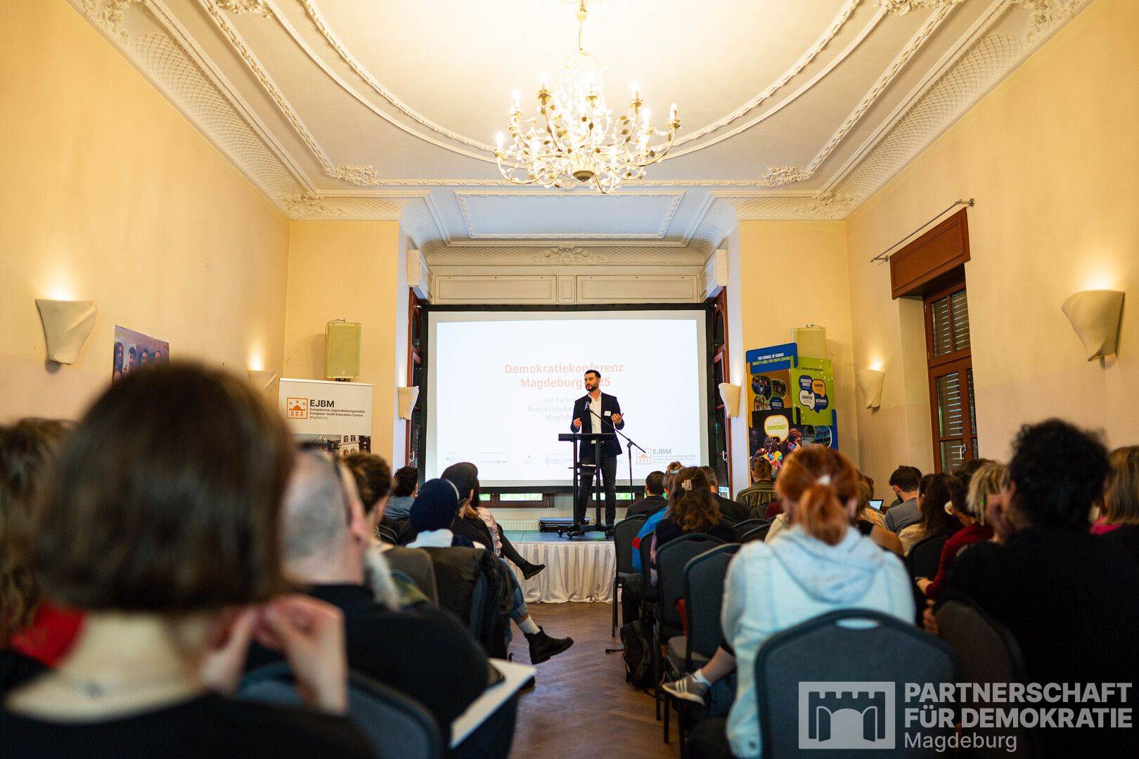In der Europäischen Jugendbildungsstätte Magdeburg (EJBM) fand am 27. Mai 2025 die Demokratiekonferenz Magdeburg 2025 statt – ein Fachtag für alle, die sich in der Stadt aktiv für Demokratie einsetzen. Ob in Jugendclubs, zivilgesellschaftlichen Initiativen, Schulen, Kulturprojekten oder der politischen Bildung: Die Konferenz brachte Menschen aus ganz unterschiedlichen Bereichen zusammen, die eines vereint – das Engagement für ein demokratisches Miteinander.