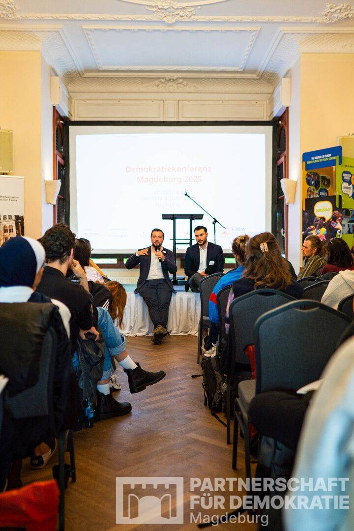 Die Demokratiekonferenz wird aus Mitteln der Partnerschaft für Demokratie in der Landeshauptstadt Magdeburg finanziert.